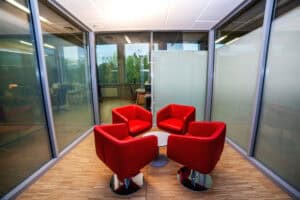 Les films “discrétion” créent des espaces confidentiels en limitant le vis-à-vis de part et d’autre des vitrages.