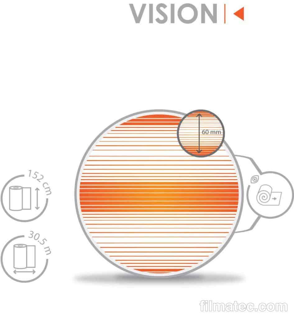 Film multicouches avec revêtement extérieur breveté. Motifs intégrés : points noirs de 11 mm espacés de 65 mm en grille orthogonale. Il est résistant aux intempéries extérieures et permet de créer une barrière visuelle pour les oiseaux.