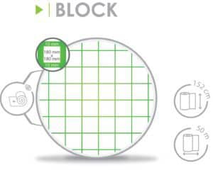 Le film décoratif Block personnalise vos vitrages ou cloisons. Il présente des carrés dépolis de 180×180 mm, séparés entre eux par 10 mm de teinte claire.