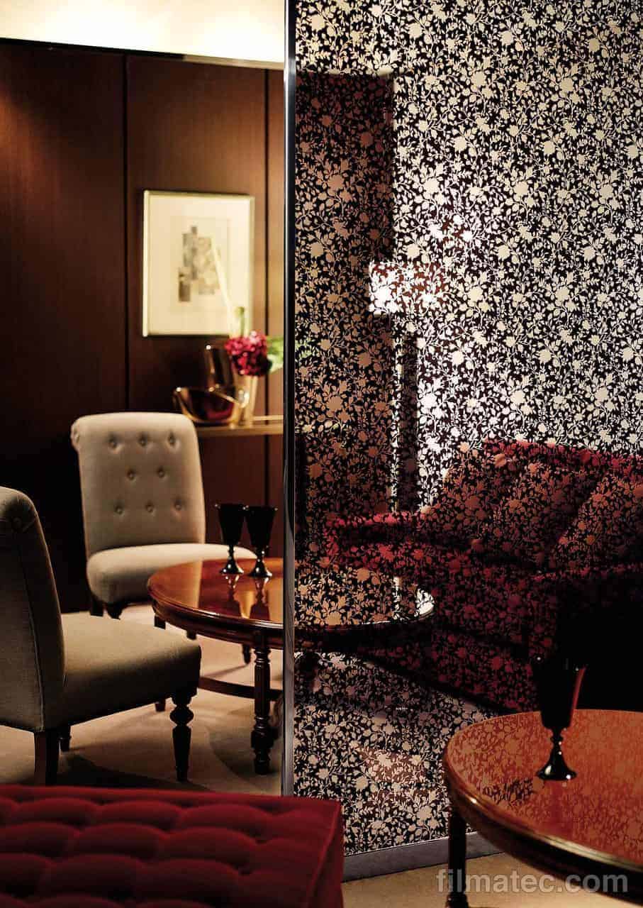 Avec son décor floral de teinte noire, le film décoratif Celest personnalise agréablement les vitrages et cloisons.