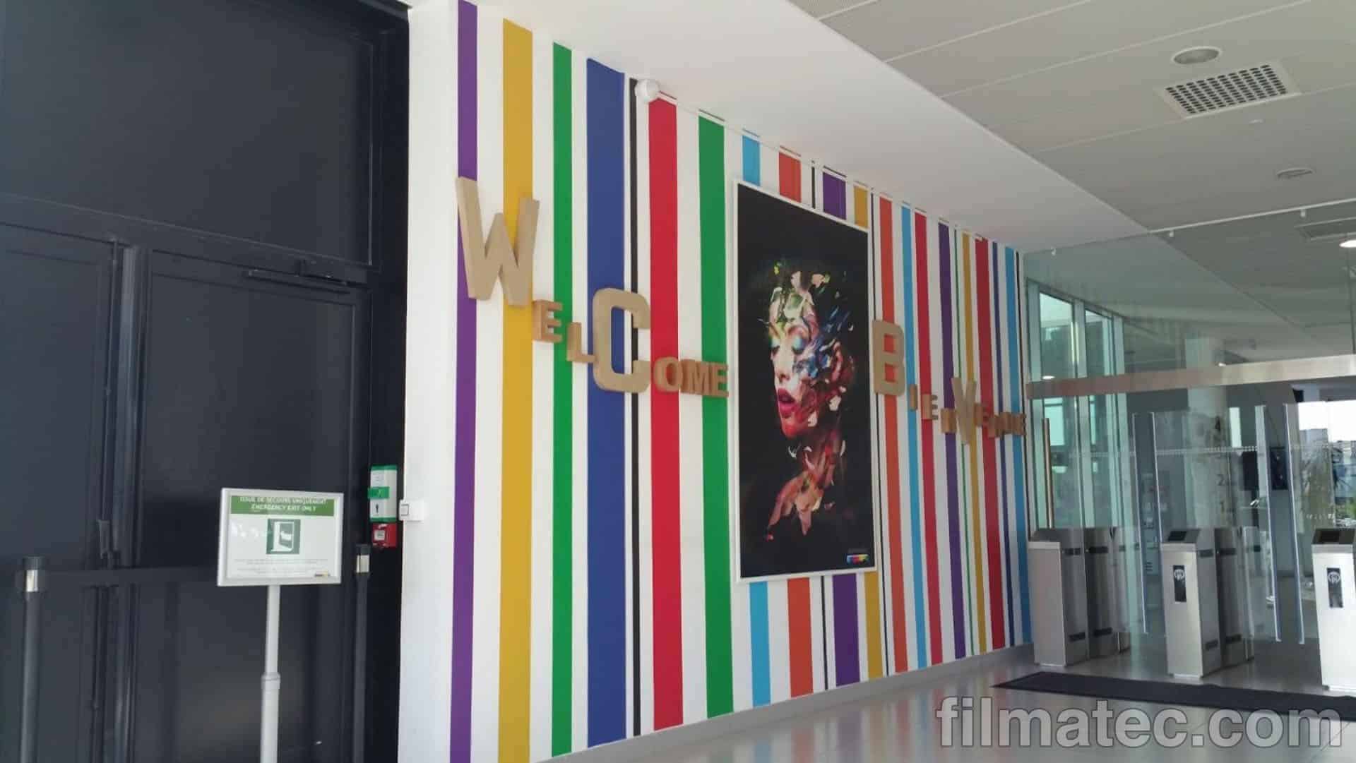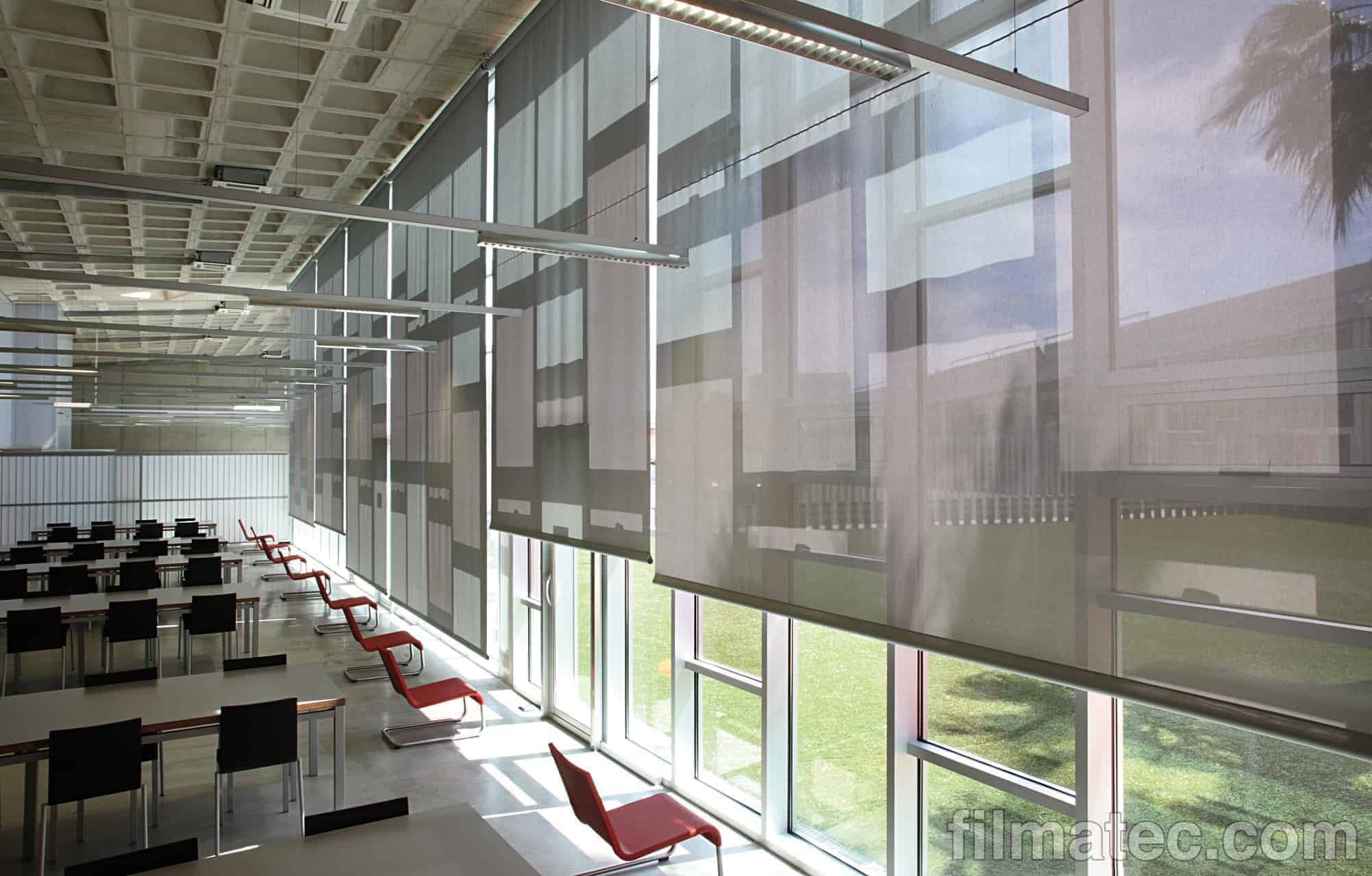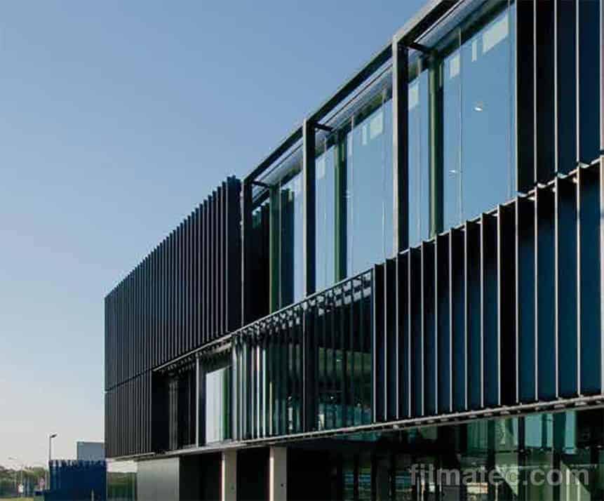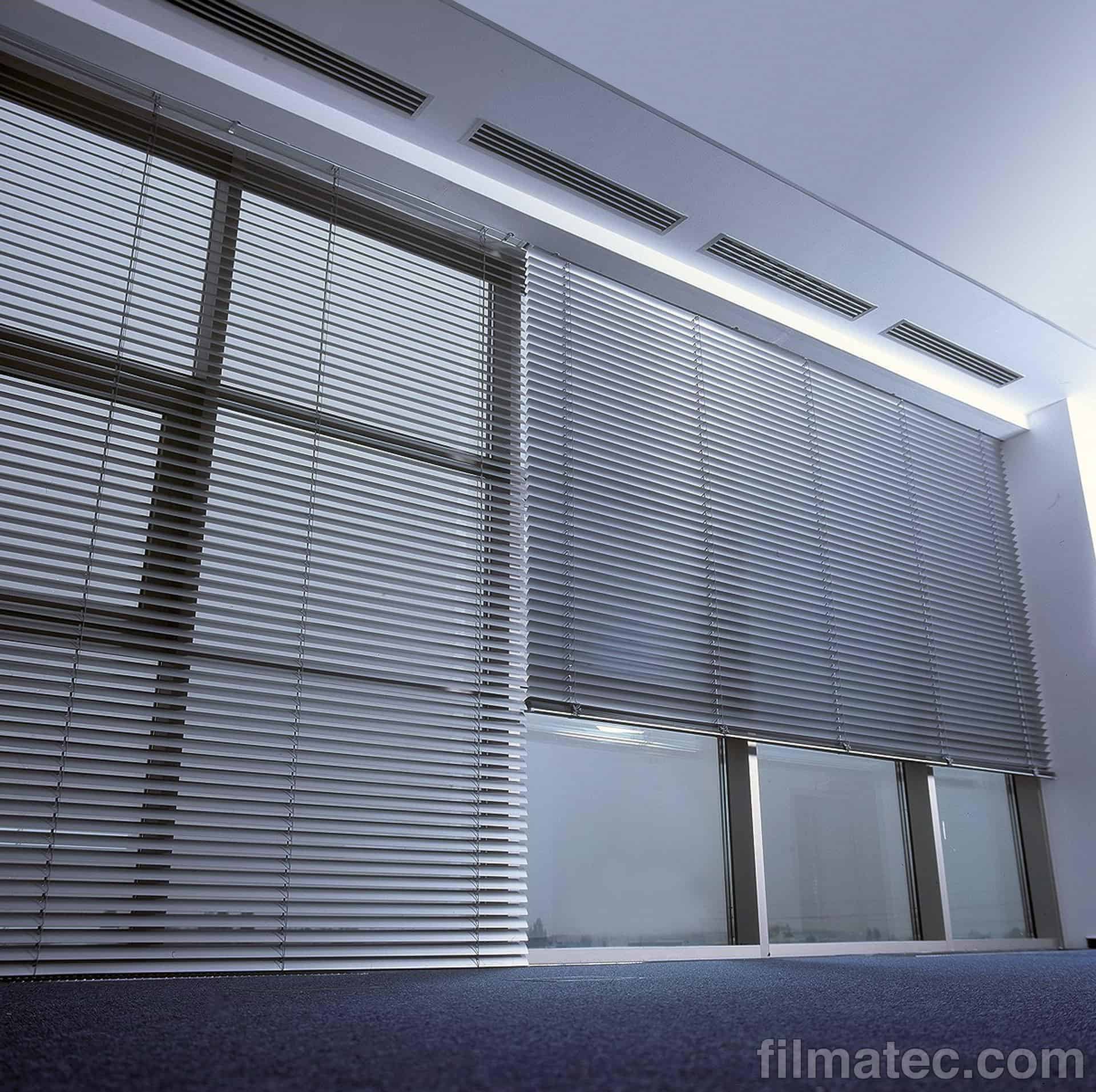 Les films décoratifs permettent de personnaliser une fenêtre, une cloison ou un meuble en verre tout en préservant l’intimité. Ces films adoucissent la lumière sans réduire la luminosité.nnSur cette image, vous visualiserez le film INT 237 en bas du vitrage et le film INT 236 au haut.