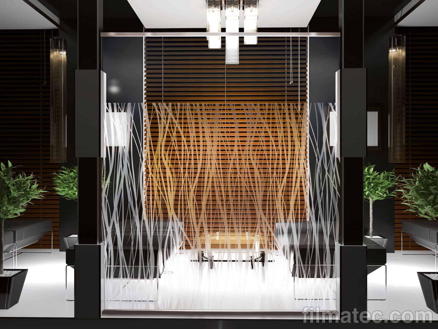 Les films décoratifs permettent de personnaliser une fenêtre, une cloison ou un meuble en verre tout en préservant l’intimité. Ces films adoucissent la lumière sans réduire la luminosité.