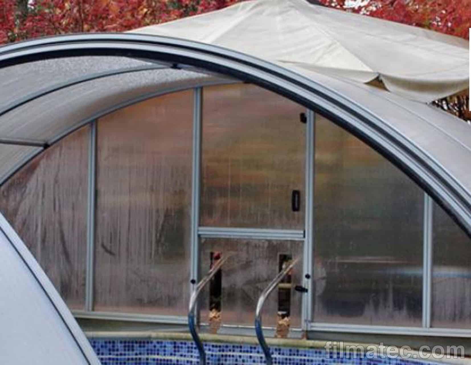 Réfléchissant d’aspect gris, le film Metalux plus a été spécialement étudié pour résoudre les problèmes de protection solaire, tels que chaleur, éblouissement ou décoloration des polycarbonates et autres matériaux de synthèse.