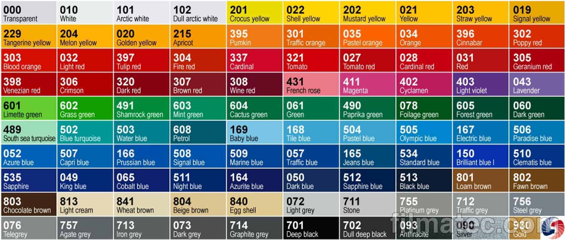 Film PVC haut. perf. (0,070 mm)n98 coloris brillants plus blanc mat et noir matnStabilité dimensionnelle excellente et très bonnes caractéristiques de façonnagenUtilisation de longue duréen8 ans (noir / blanc)n7 ans (transparent / coloré)