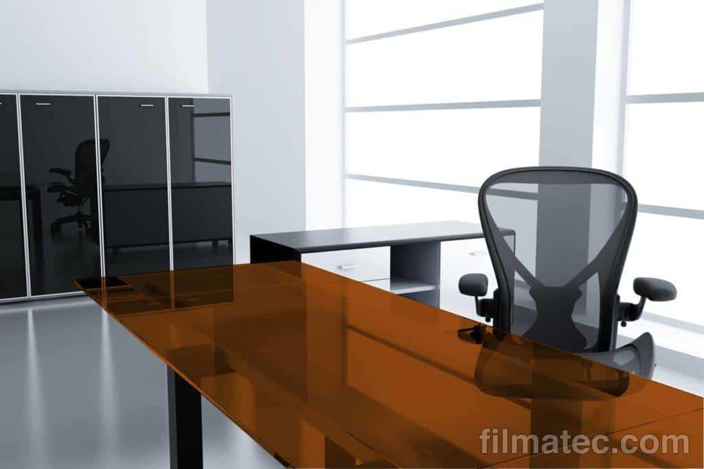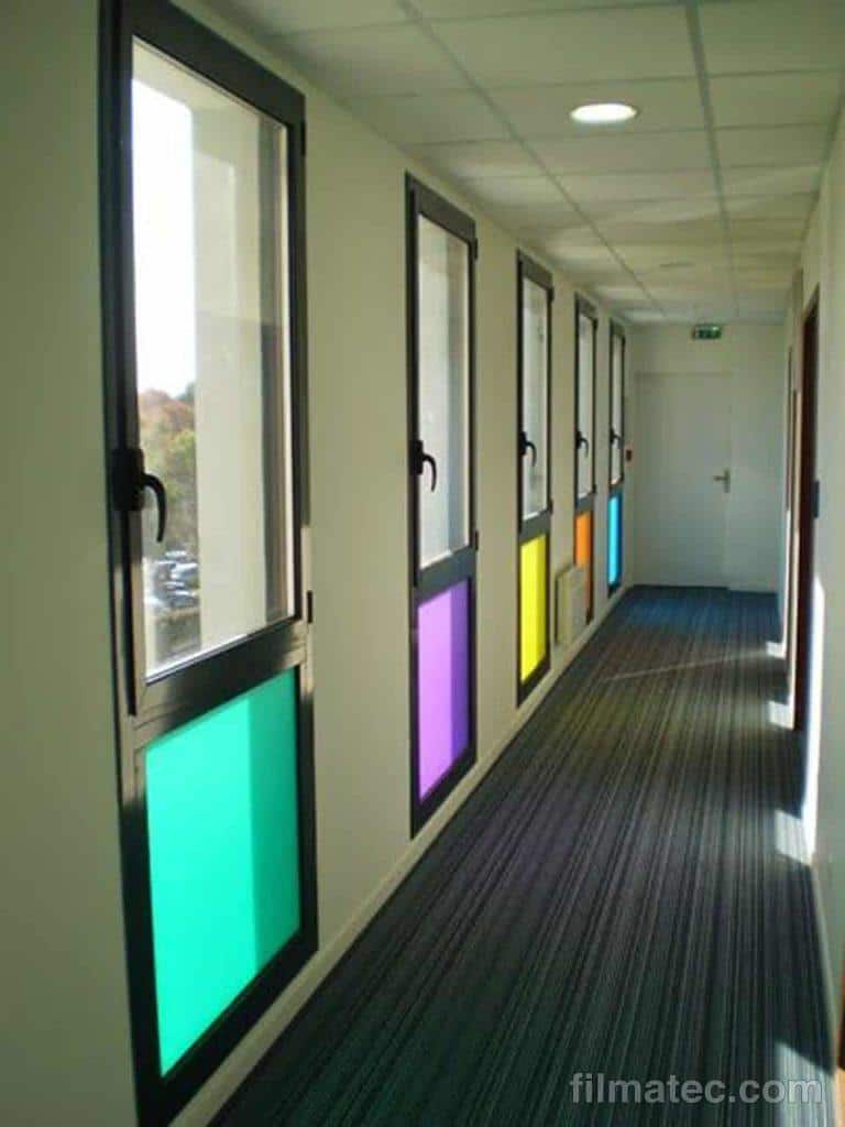 Posé sur un vitrage clair, le film transparent Orange 30 C lui donne une teinte orange soutenue, tout en conservant une parfaite transparence. Il apporte une touche colorée et dynamique à toute vitre intérieure
