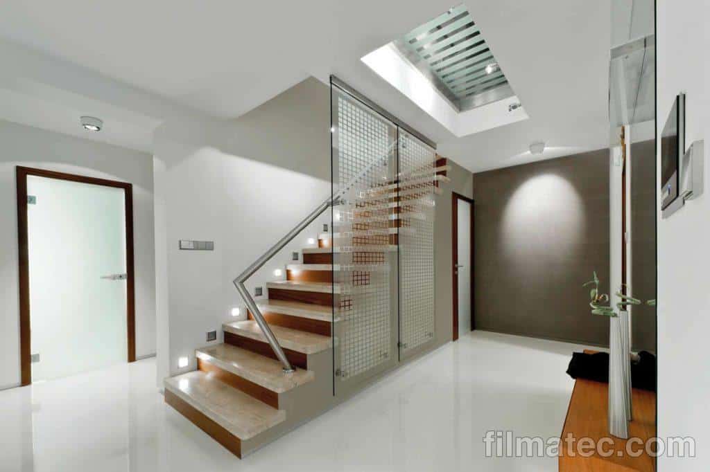 Les films décoratifs permettent de personnaliser une fenêtre, une cloison ou un meuble en verre tout en préservant l’intimité. Ces films adoucissent la lumière sans réduire la luminosité.