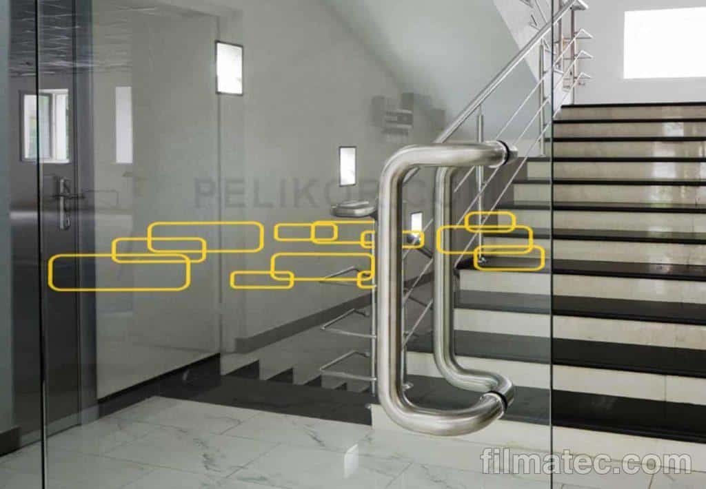 Des sécurités d’usage s’imposent dès la porte d’entrée d’un bâtiment, pour toutes les personnes souffrant de troubles de la vision « Toutes les portes comportant une surface vitrée doivent être repérables ouvertes comme fermées à l’aide d’éléments visuels contrastés par rapport à l’environnement immédiat. »