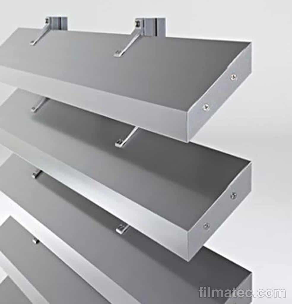 Les lames brise-soleil DucoSun Linear sont en forme de parallélogramme. Fixes ou orientables, toutes les dispositions et toutes les méthodes de pose sont permises. Très utilisées en brise-soleil orientable pour leur très bonne occultation, ou en brise-soleil projection (auvent ou casquette) pour les grands porte-à-faux.