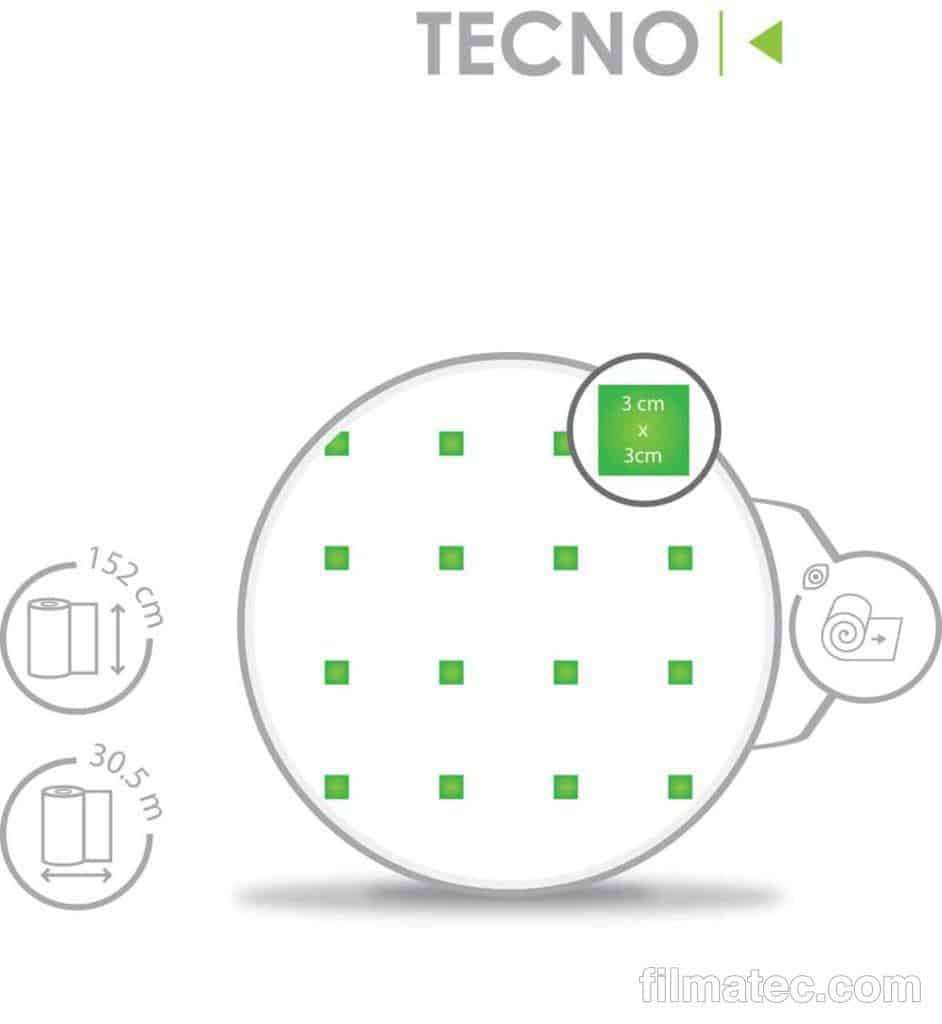Le film décoratif Tecno personnalise vos vitrages ou cloisons. Dépoli, il est troué de petits carrés de 3 x 3 cm.