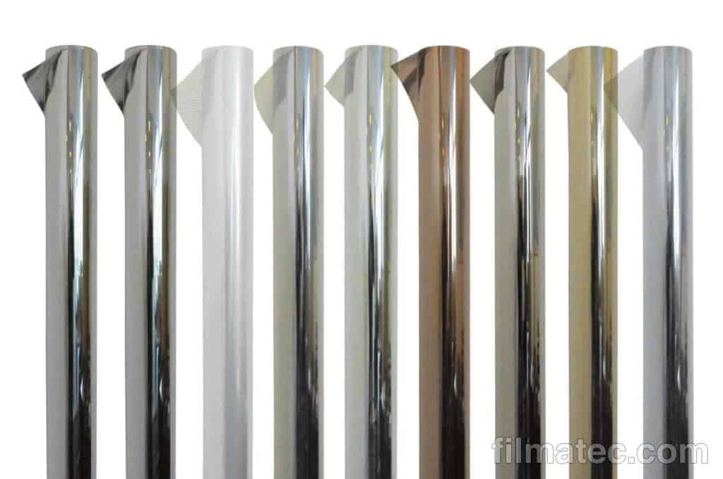 Film de protection solaire avec effet miroir : 53 % d’Energie Solaire Rejetée, 43% de réduction d’éblouissement et 99% de réduction des Ultraviolets – Réduction de perte de chaleur en hiver de 17% sur double vitrage et 26% sur simple vitrage