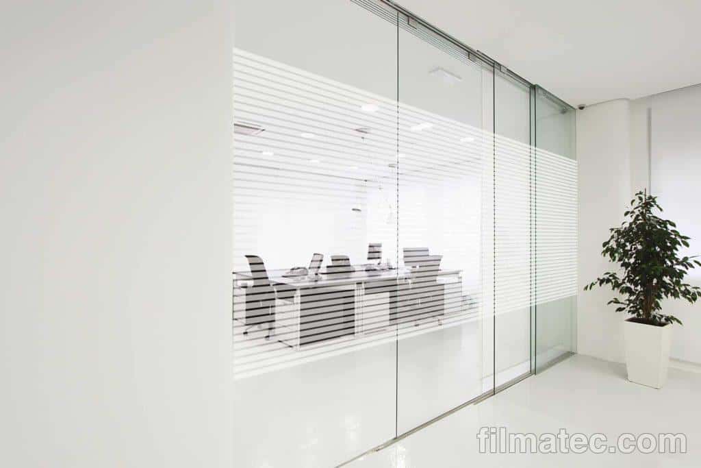 Le film décoratif Sirius personnalise vos vitrages ou cloisons. Il est orné de lignes dépolies de 18 mm, séparées entre elles par des espaces clairs de 6 mm.