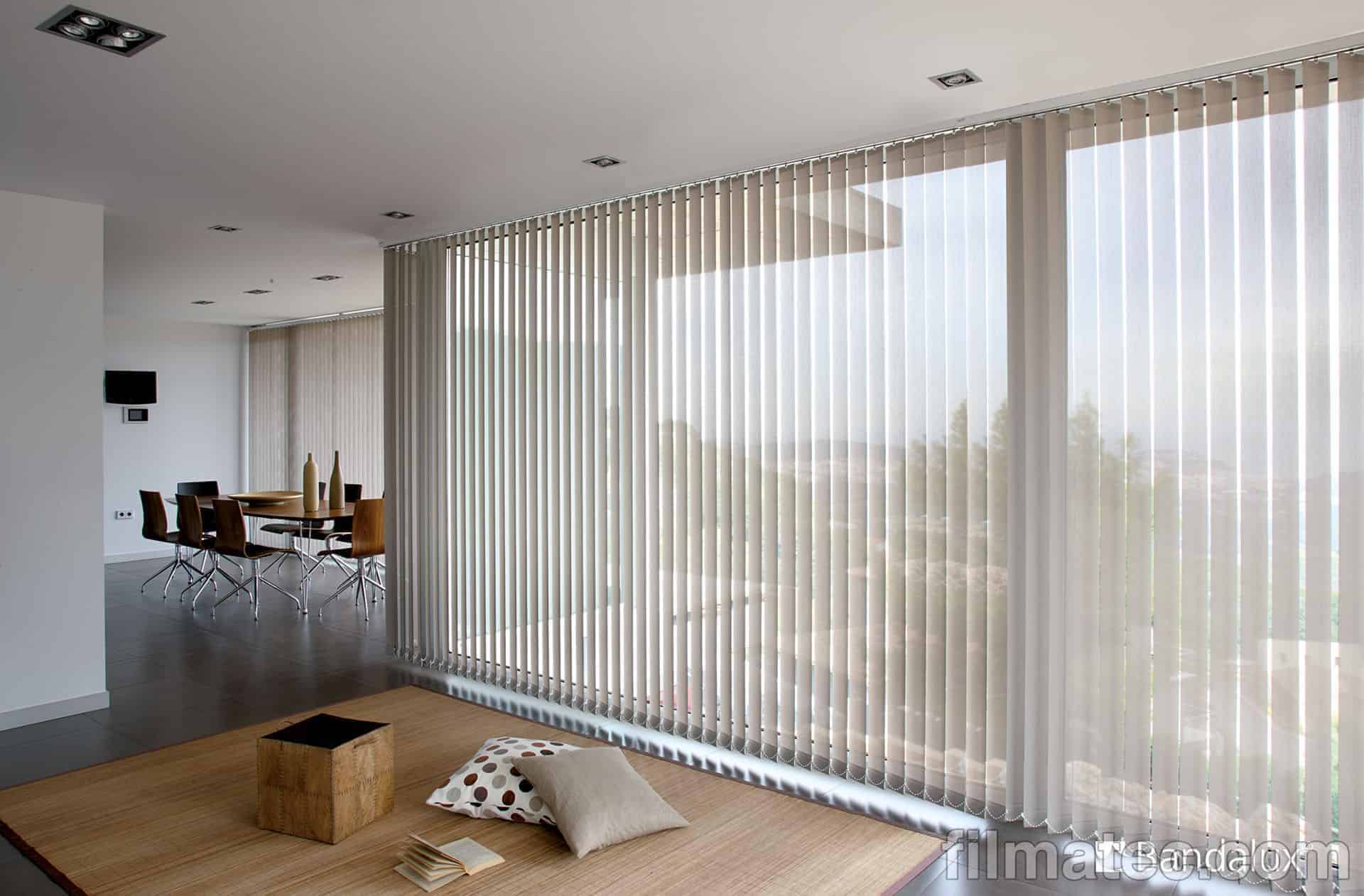 Le système à Bandes Verticales peut couvrir des dimensions jusqu’à 6m de largeur et 6 metres de hauteur, idéal pour les grandes surfaces vitrées.