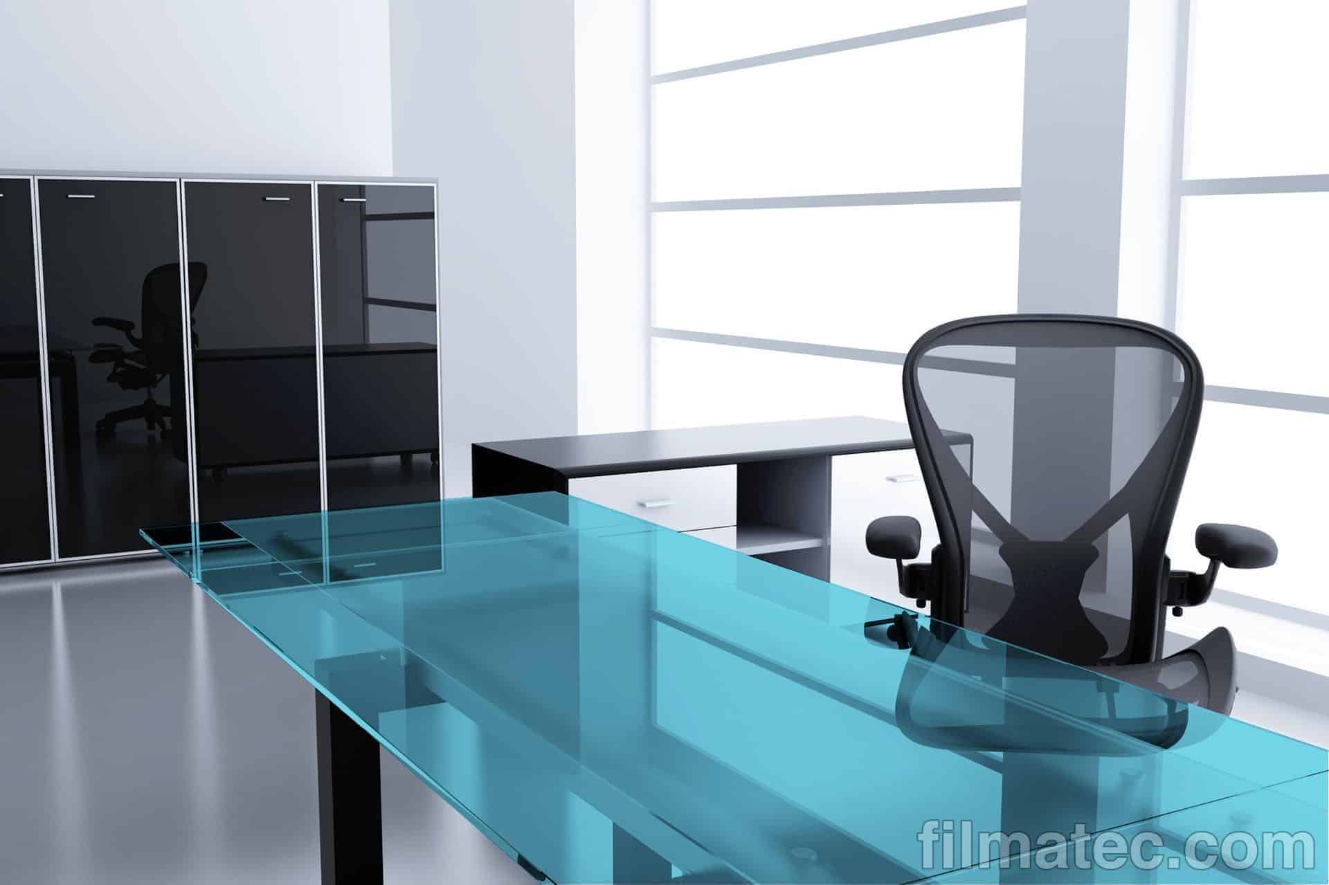 Posé sur un vitrage clair, le film transparent Turquoise 50 C lui donne une bleue/verte soutenue, tout en conservant une parfaite transparence. Il apporte une touche colorée et dynamique à toute vitre intérieure