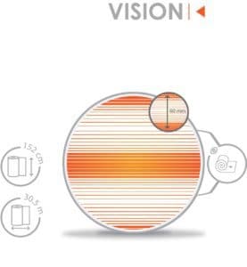 Le film décoratif Vision personnalise vos vitrages ou cloisons. Il est orné de bandes blanches dégradées de 60 mm de large.
