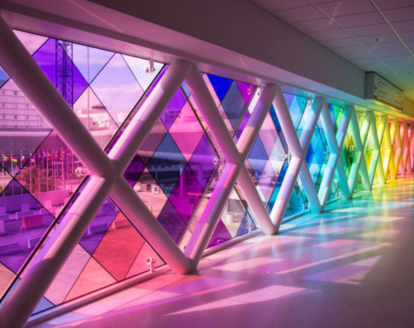 Posé sur un vitrage clair, le film transparent Bleu 65 C lui donne une teinte bleue soutenue, tout en conservant une parfaite transparence. Il apporte une touche colorée et dynamique à toute vitre intérieure