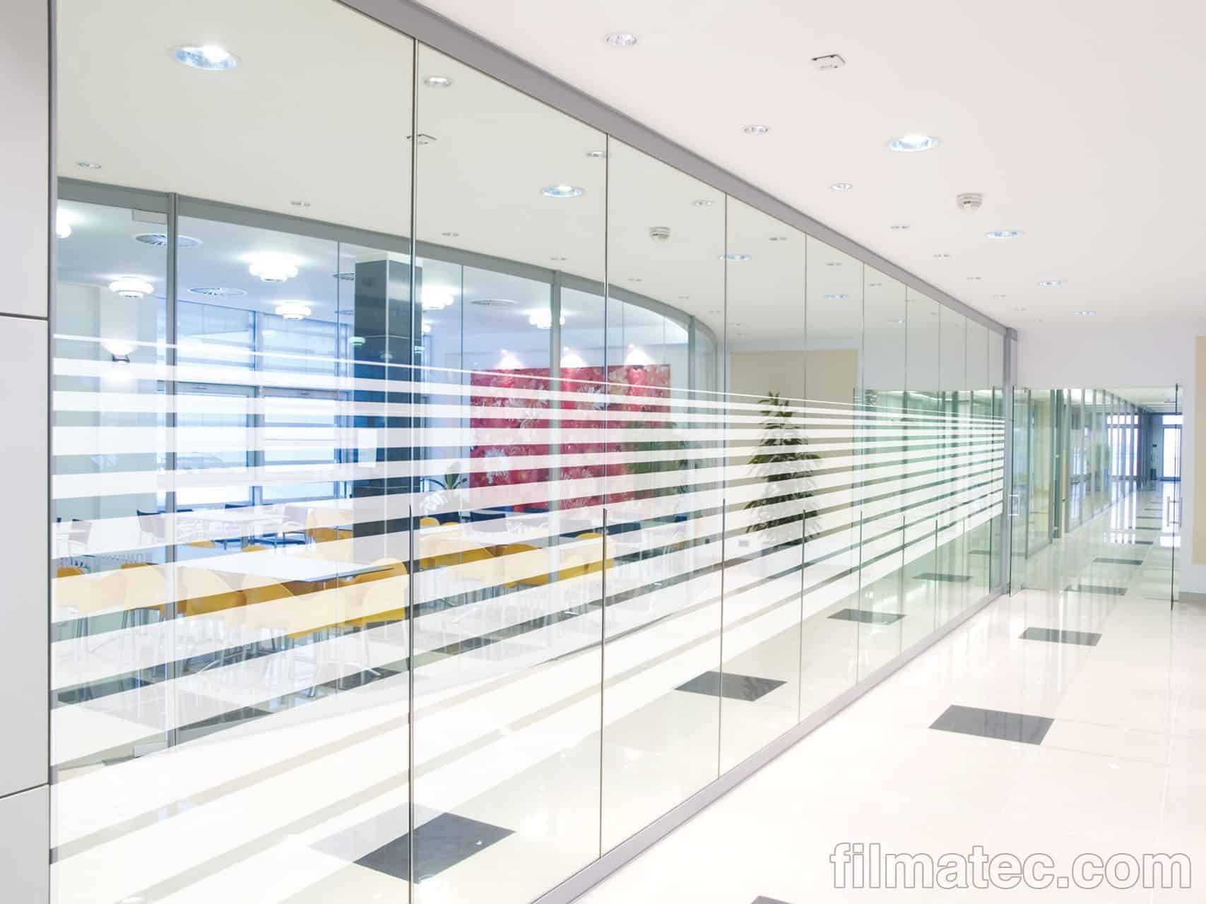 Orné d’un dégradé de bandes opaques, le film décoratif Lineal personnalise vos vitrages ou cloisons.