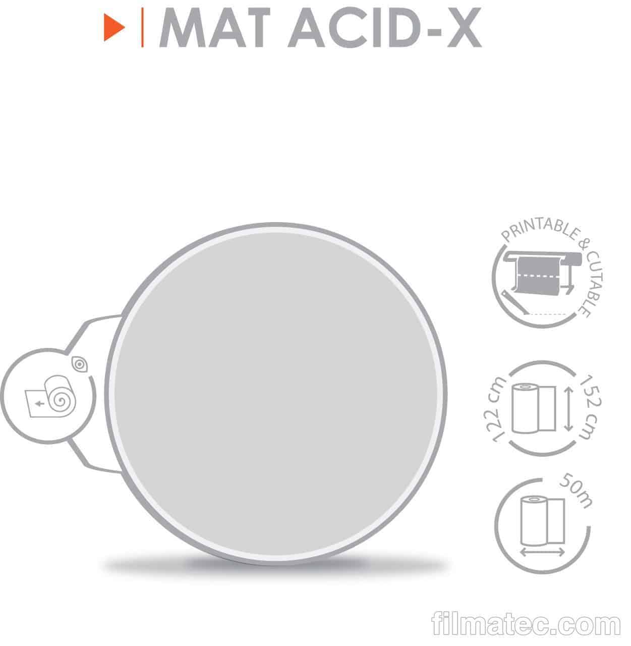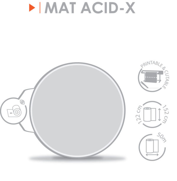 Le film de discrétion Mat Acid-X est conçu pour échapper aux regards indiscrets. Parfaitement opalescent, il laisse toutefois passer une bonne partie de la lumière. Il convient aussi bien pour une application en extérieur qu’en intérieur.