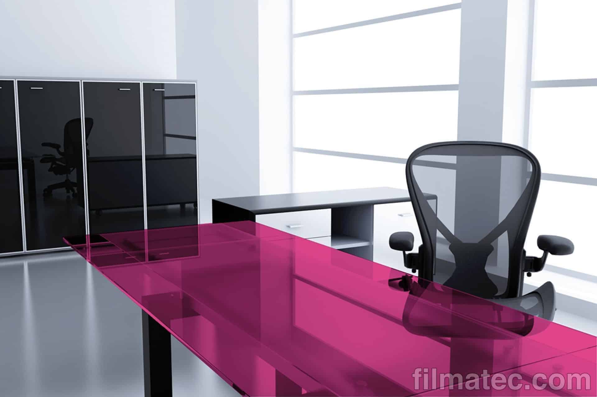 Posé sur un vitrage clair, le film transparent Rose 50 C lui donne une teinte rose soutenue, tout en conservant une parfaite transparence. Il apporte une touche colorée et dynamique à toute vitre intérieure
