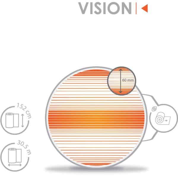 Le film décoratif Vision personnalise vos vitrages ou cloisons. Il est orné de bandes blanches dégradées de 60 mm de large.