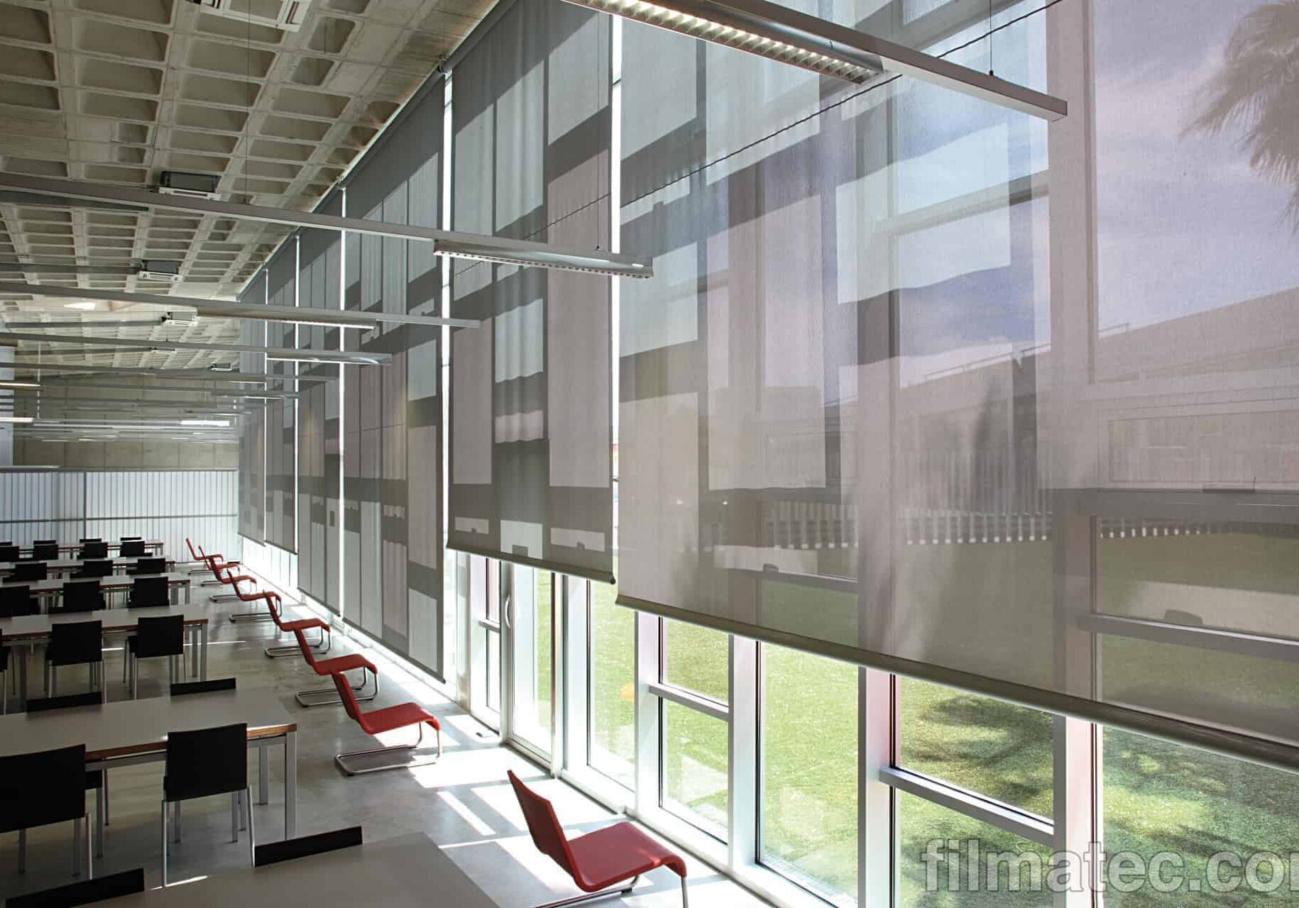 Stores enrouleurs intérieur baie vitrée salle d'étude